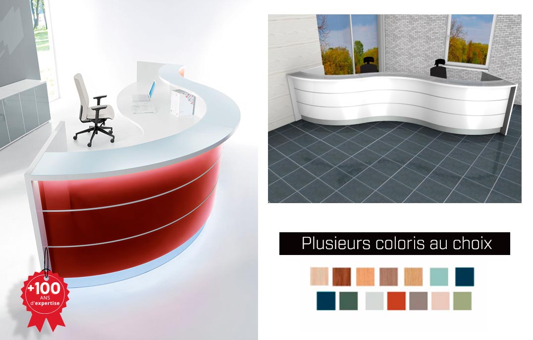 Banque d'accueil vague - Lumineuse L 4.56 m - Valve
