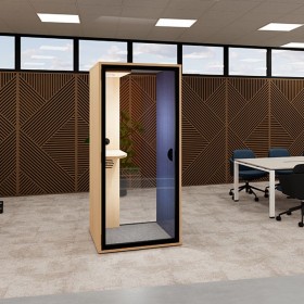 Cabine acoustique pour bureau tout équipée - 1 personne avec position assisse - Fond vitré - H 2.12 x L 0.96 x P 0.95 m - Essentielle S Bureau